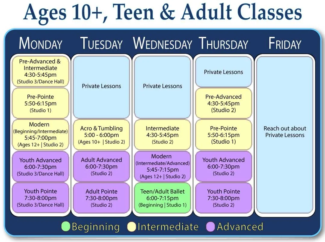 Our dance program is primary Ballet but we include other styes such as Contemporary, Jazz, Modern and Lyrical in our upper levels.